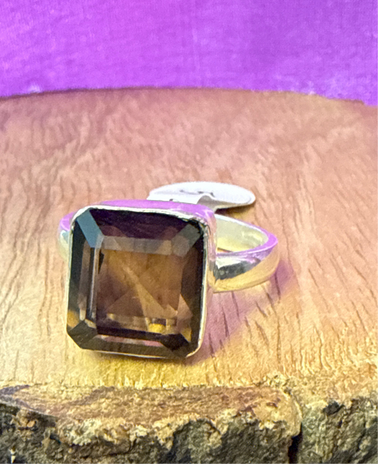 Smoky Quartz Ring | Faceted Square Cut | 925 Sterling Silver