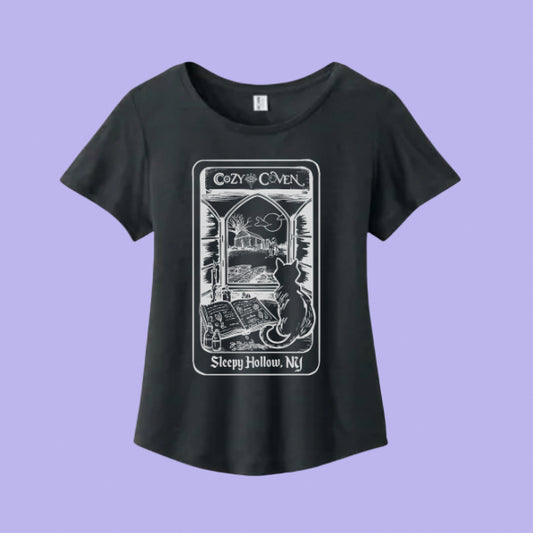 Cozy Coven Short Sleeve Drape Scoop Neck Tee Shirt | Sleepy Hollow NY Tarot Card| 🖼️ by Claire Widman