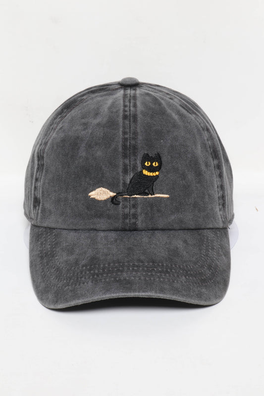 Halloween Black Cat Embroidery Cotton Baseball Cap