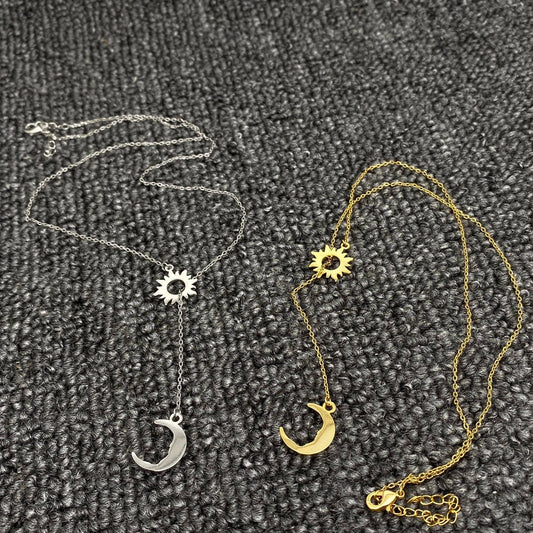 18K Gold Plated Sun Moon Lariat Necklace - MS