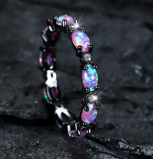 Australian Purple Opal Black Tone 925 Silver Ring