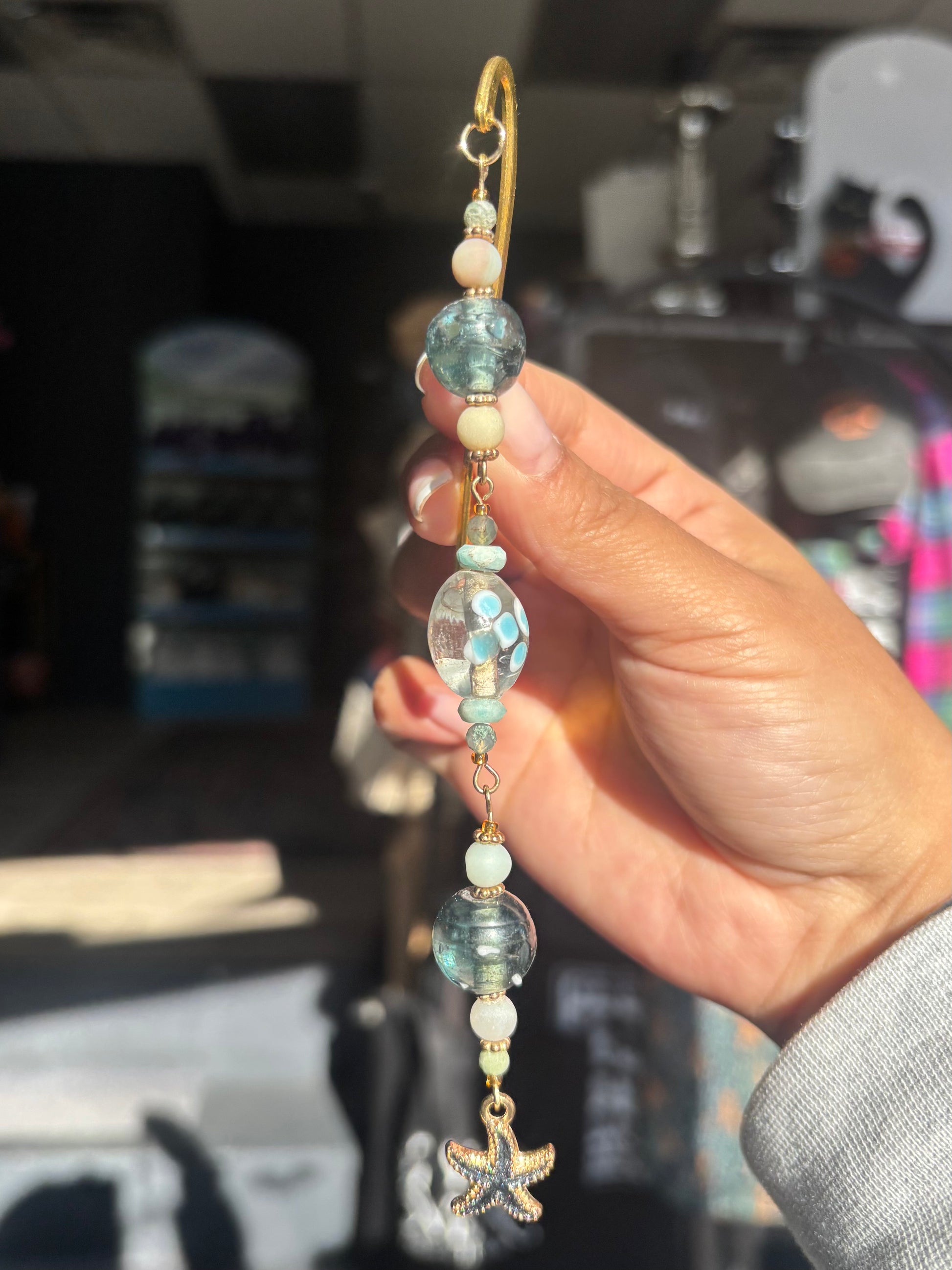 - Paired with the Blue and Honey Tiger eye and pearl beads, this bookmark hook really resembles ocean waves and ocean life.