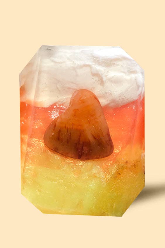 Our Candy Corn bar soap is infused with carnelian for a luxurious, gentle lather.
