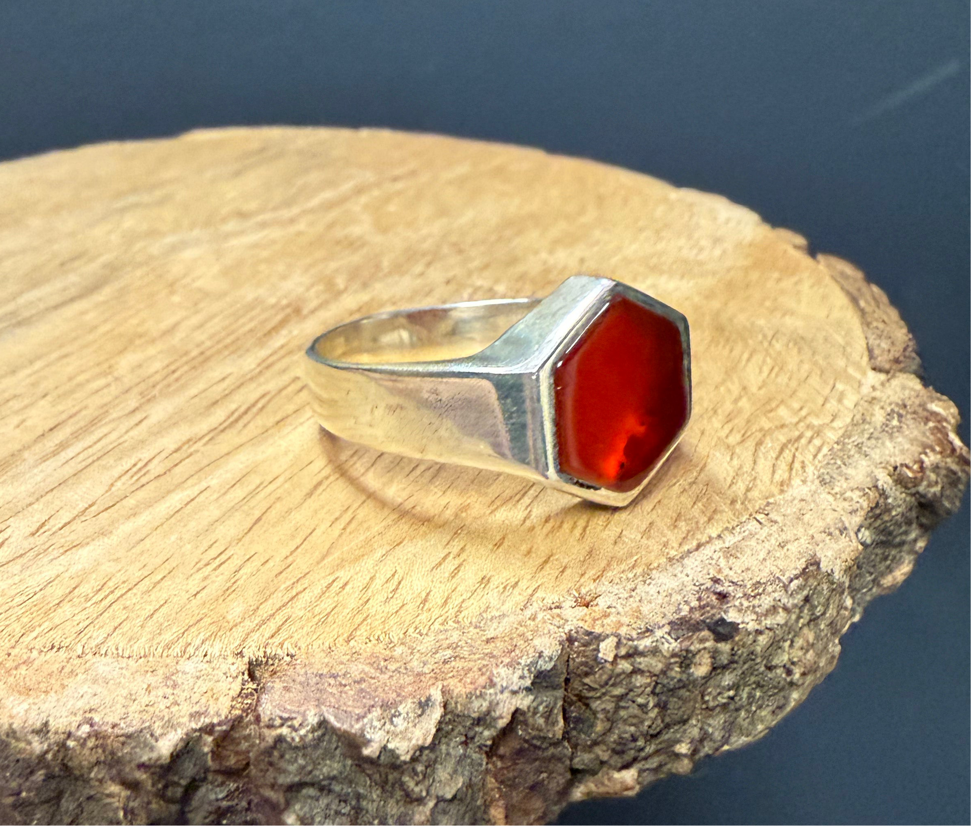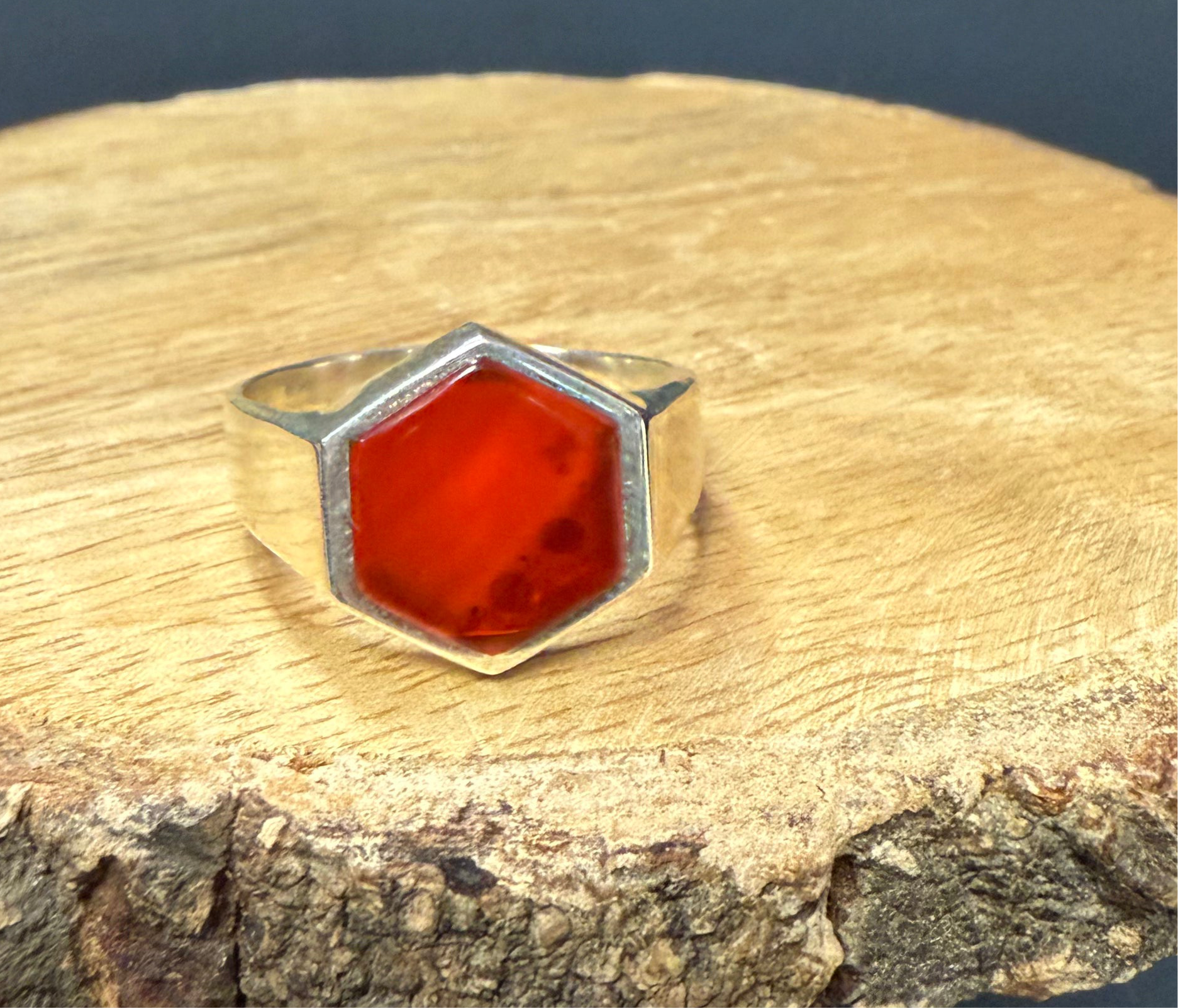 Carnelian Hexagram Unisex Signet Ring | 925 Sterling Silver