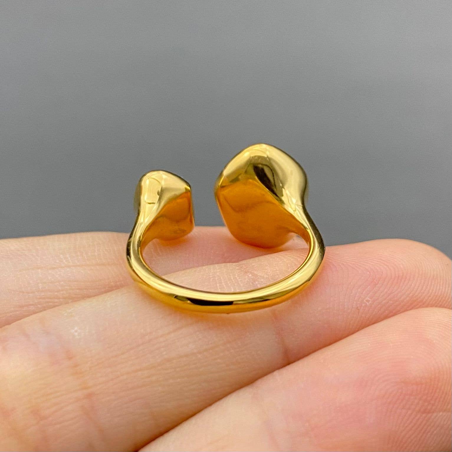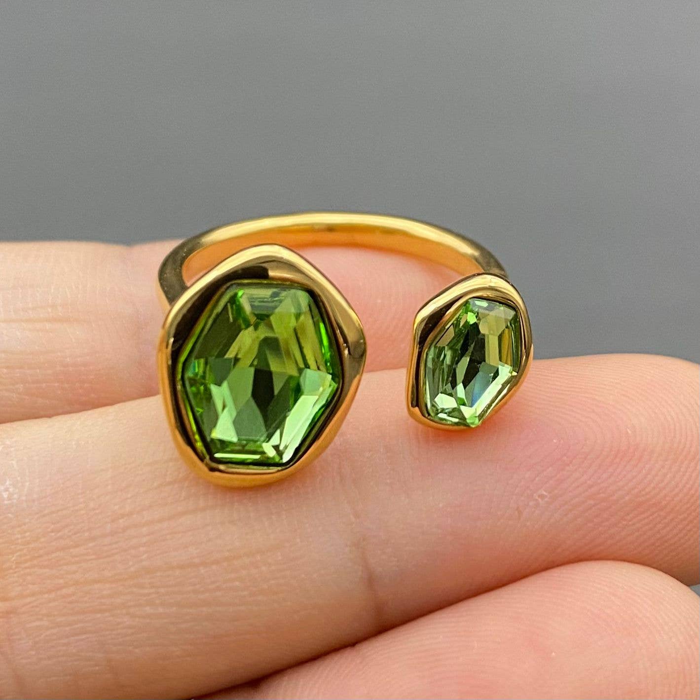 Double Green Zircon 18K Gold Plated Stainless Stee Ring