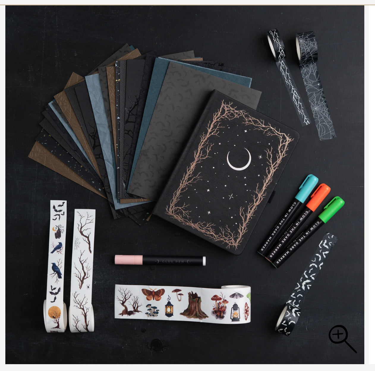 Step into the Haunted Hollow with this limited edition stationery set filled with spooky, glow-in-the-dark details. Curated exclusively for the season, this magicial collection includes everything you need for journaling, planning, and creative projects.
