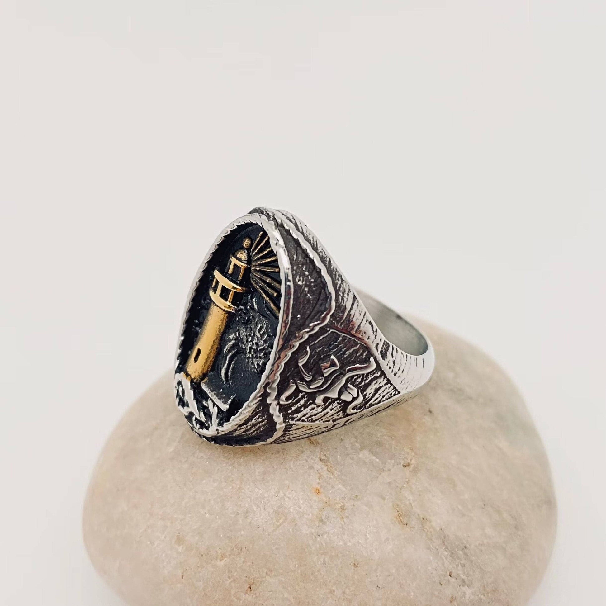 Men's Stainless Steel Ring Lighthouse Pattern - MJ/MR