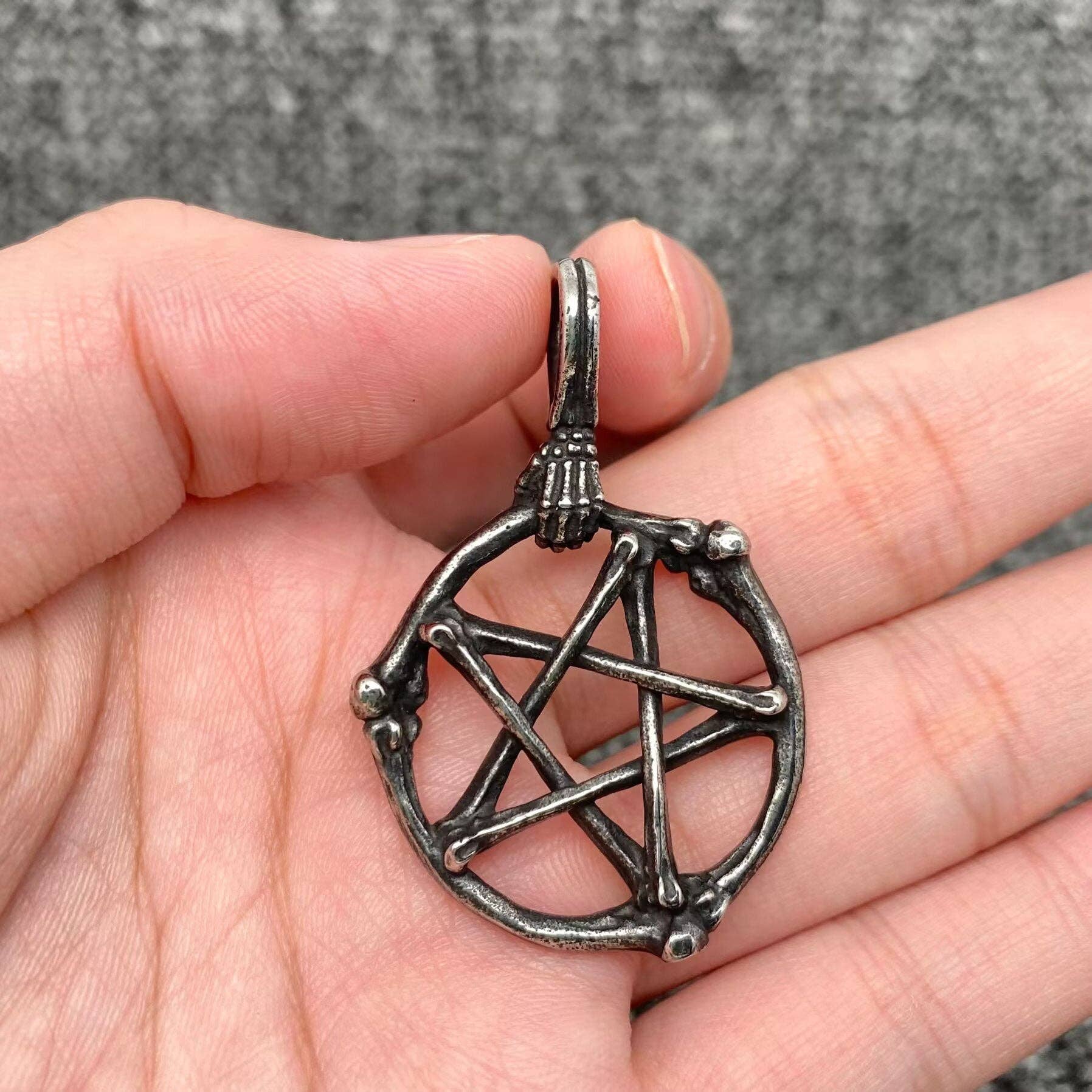 Blackening Stainless Steel Skull Pentagram Pendant - MJ/MNP