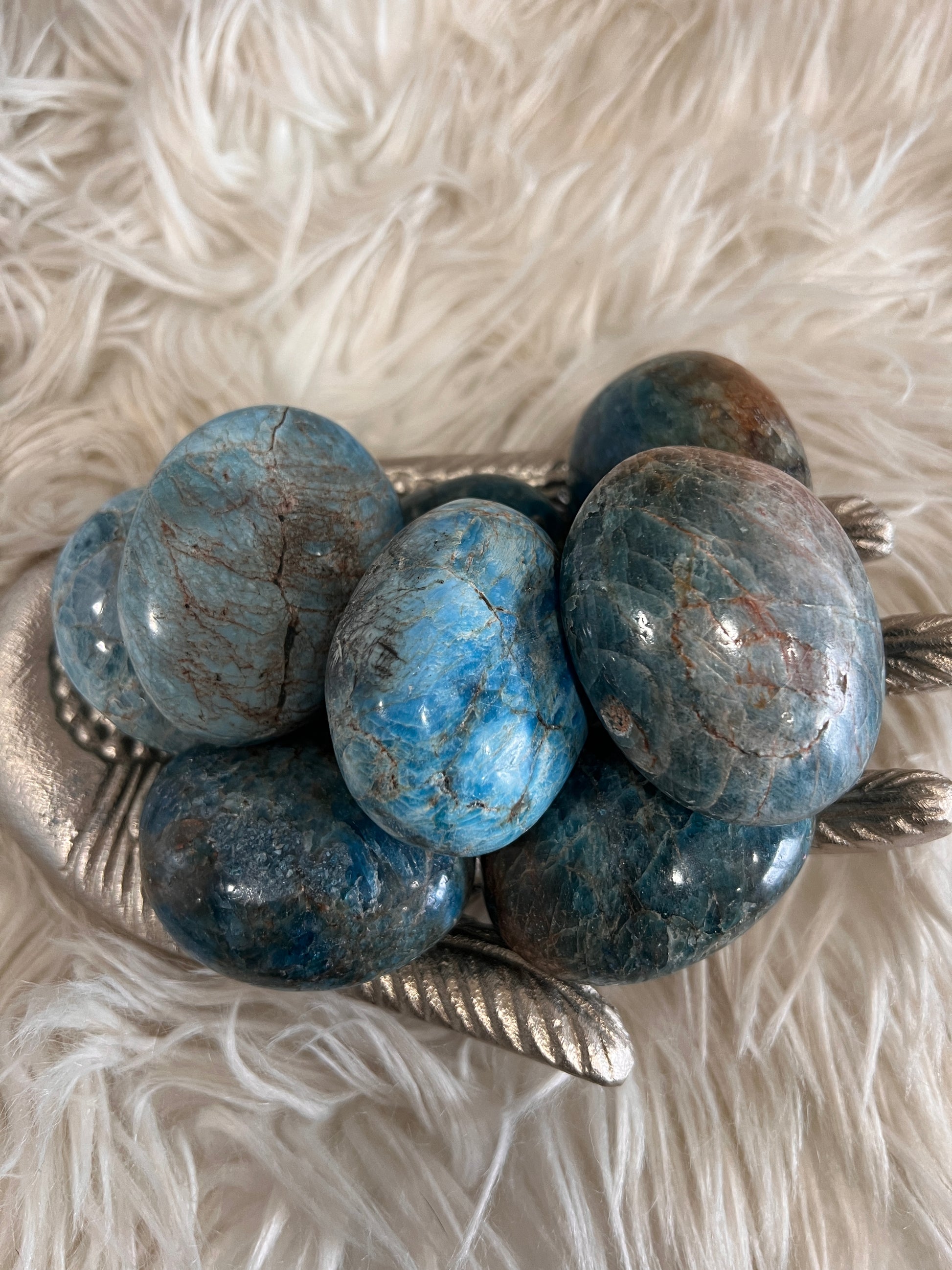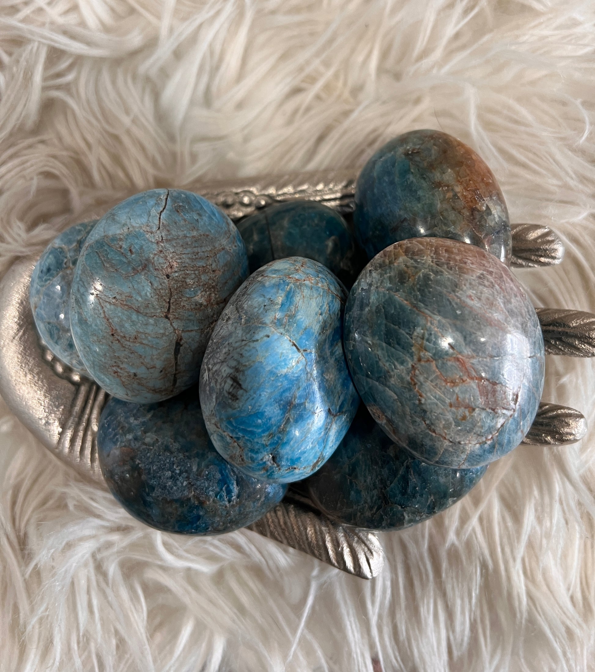 Blue Apatite is a stone of manifestation, it offers a cleansing influence to the aura, especially in the mental body, the vibratory level associated with psychic perception and paranormal abilities. It is a great stone to use in past-life or alternate-life work, because of its ability to access the energy levels where the Akashic records and our individual soul patterns exist.