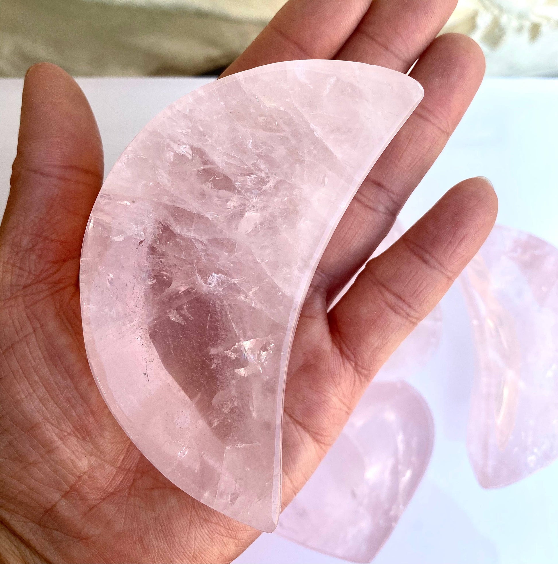 Soft, luminous, and filled with heart-centered energy, these Rose Quartz Moon or Star Crystal Bowls are both beautiful and purposeful.