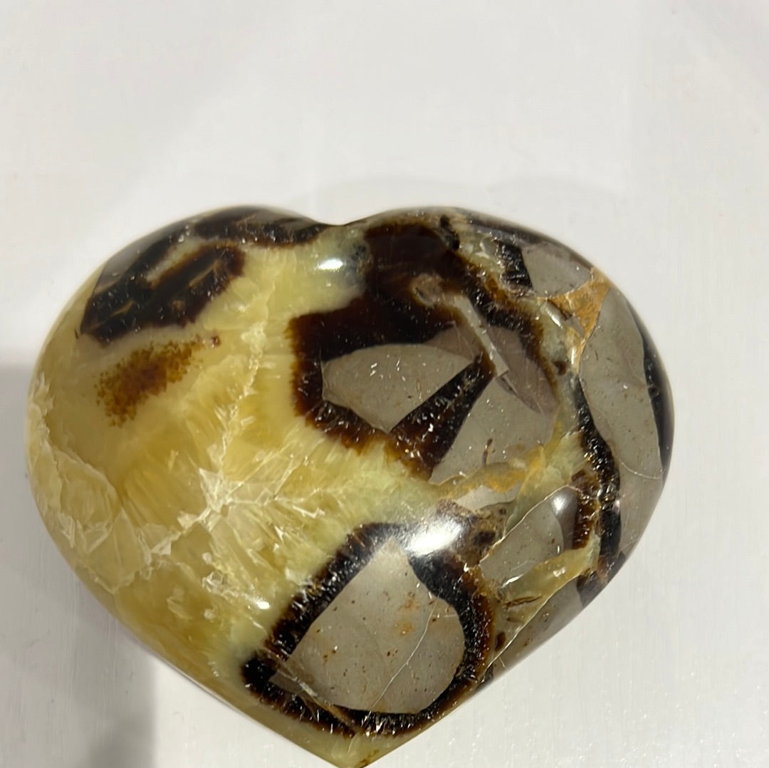 Septarian Nodule is a powerful grounding stone that awakens one’s connection to Mother Earth and the nurturing energy she provides. Ones root chakra will become activated when working with this stone, as well as vital life force energy being channeled throughout your body. This energy being transferred through you is that of ancient origin, being a combination of 3 powerful minerals that will help in the realignment of one's chakra column. One may experience an “inner awakening” when connecting with this stone, driving drastic change and new habits to replace ones old daily habits. Septarian is a perfect tool for anyone going through some sort of drastic change in their life and can help one repair their emotional body. Carrying this stone daily will provide a protective shield around ones aura full of power earthen energy that will help one slowly heal from the inside out.