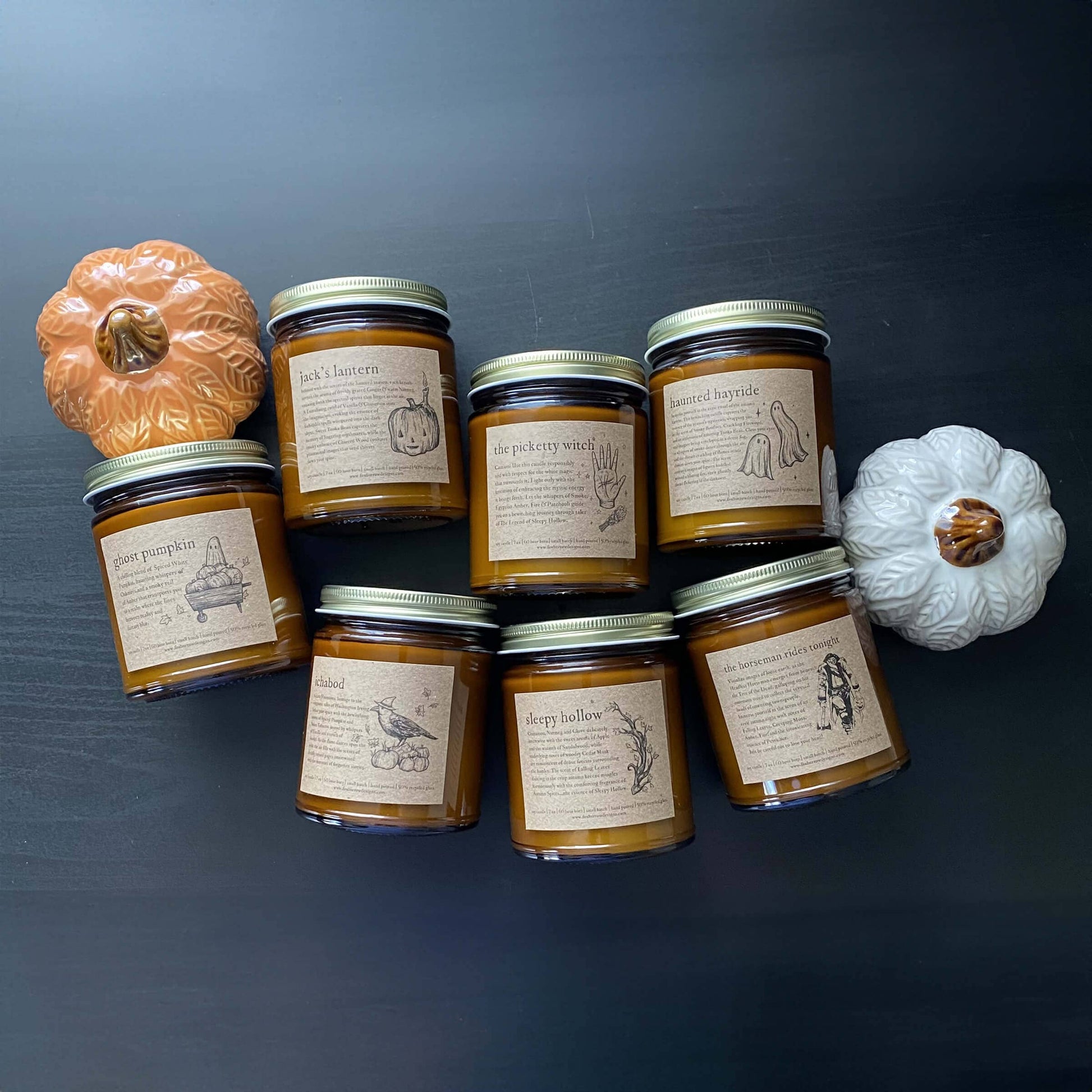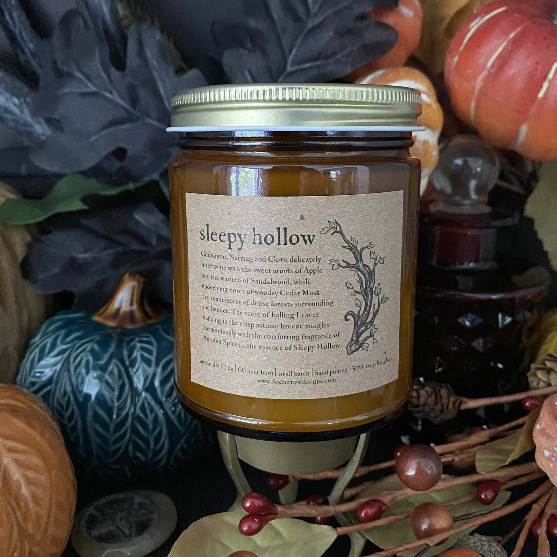 Cinnamon, Nutmeg and Clove delicately intertwine with the sweet aroma of Apple and the warmth of Sandalwood, while underlying notes of woodsy Cedar Musk are reminiscent of dense forests surrounding the hamlet. The scent of Falling Leaves dancing in the crisp autumn breeze mingles harmoniously with the comforting fragrance of Autumn Spices...the essence of Sleepy Hollow.