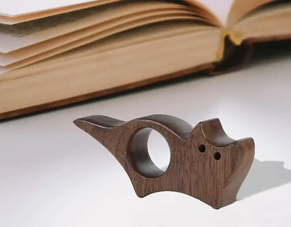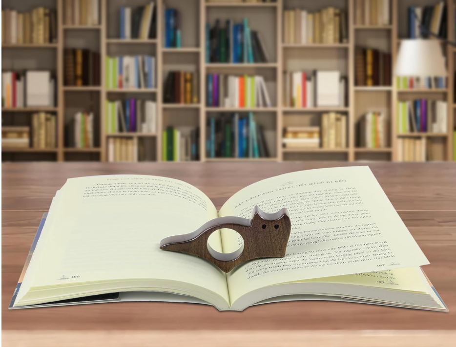 Made from high-quality natural walnut, this unique thumb page holder in the shape of a cute kitty is the perfect accessory for book worms and cat lovers.